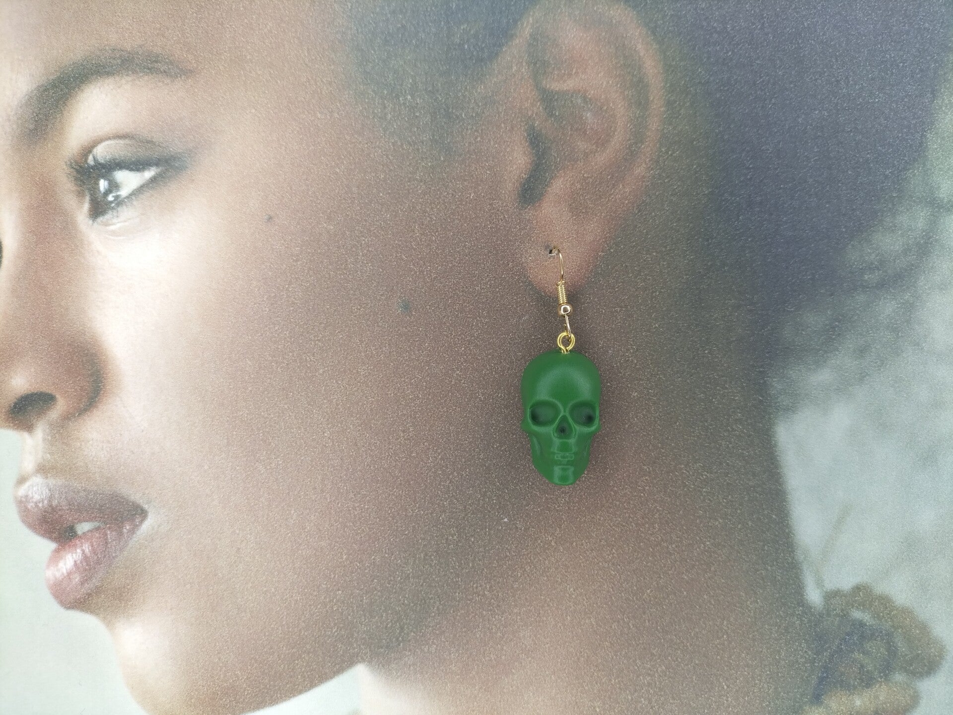 Boucles d'oreilles pendantes Tête de mort kaki BO22A