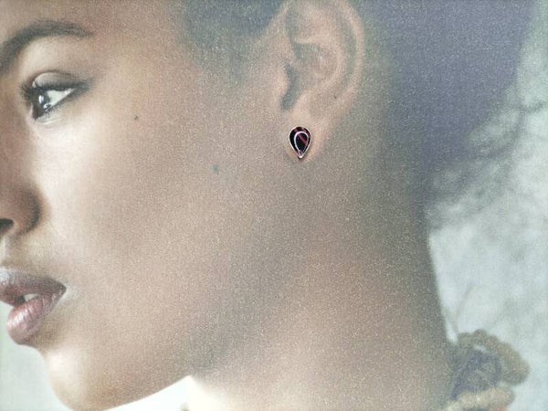 Boucles d’oreilles en pâte polymère, cerclage en acier, finition résine époxy