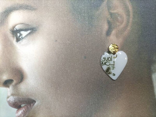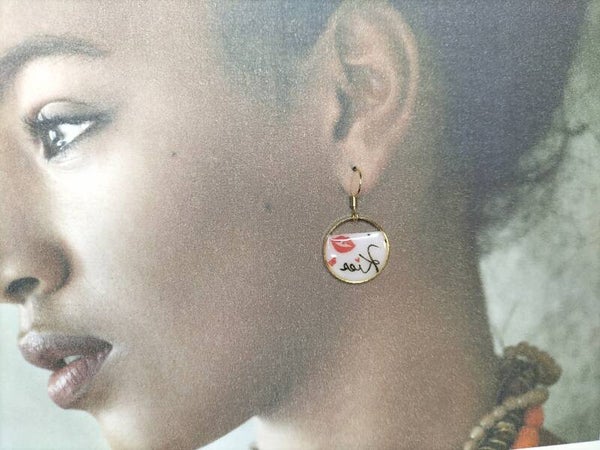 Boucles d'oreilles en fimo, attache en acier, finition résine époxy